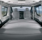 Le premier rang arrière dispose de sièges pliables et rabattables. Ceux ci et la banquette de la deuxième rangée, fixés sur des rails, coulissent, notamment pour faire évoluer le volume de chargement en fonction des exigences. Ces rails, parallèles et équidistants permettent de placer en position centrale ou latérale des sièges individuels (35 kilogrammes l’unité), proposés en option sur certains marchés.