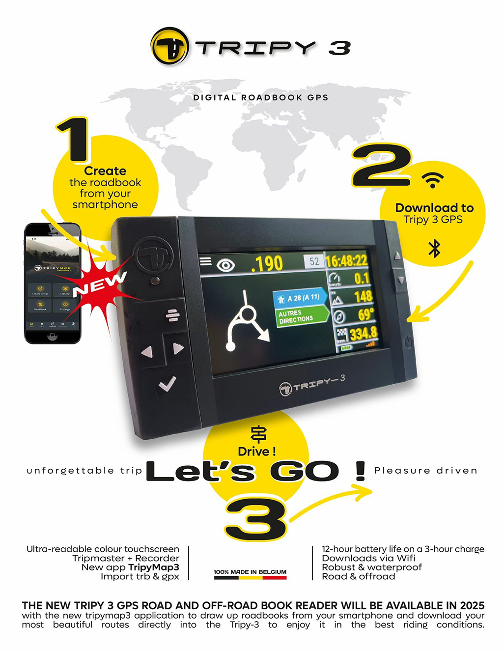• Vous créez votre Roadbook sur votre smartphone - ensuite chargez votre Tripy 3 GPS
