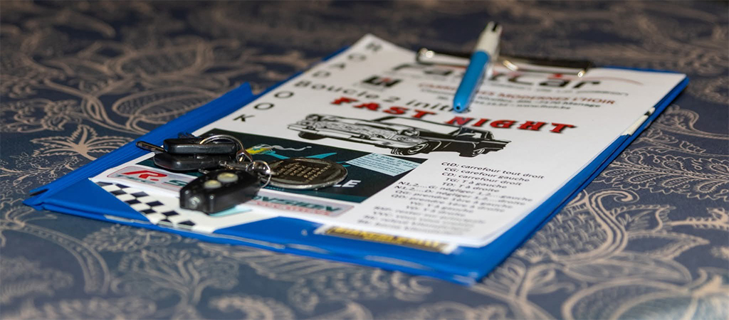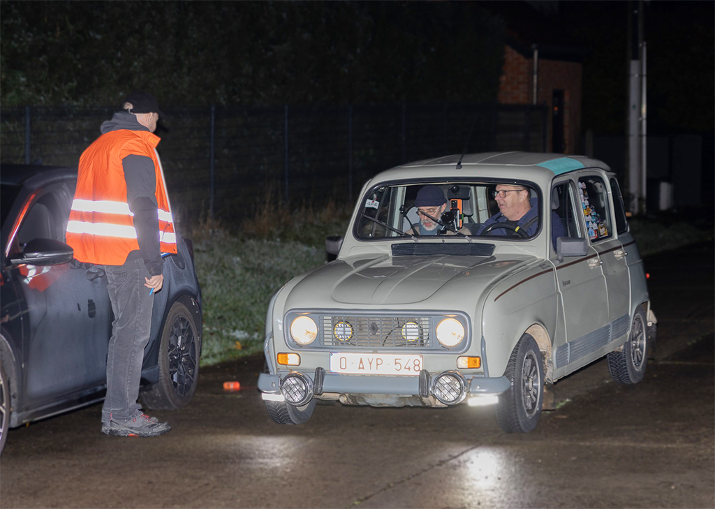 L’heure du retrait du roadbook approche. 18h38, je le récupère et aussitôt on s’installe dans la voiture pour étudier les pièges potentiels. Bics et fluos à la main, on décode chaque petite astuce avant de s’élancer sur une première boucle d’environ 60 kilomètres dans une région qu’on connait bien, Sars-la-Buissière, Hantes-Wihéries, etc...