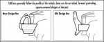 En ce qui concerne la forme, là aussi l’évolution est notoire. Les grilles verticales et agressives se sont de plus en plus inclinées vers l’arrière et sont devenues des protections à la fois pour les garde-boue et les capots, dont un des buts est, en cas de collision avec un plus faible usager de la route, de ne pas l’envoyer sous les roues mais plutôt de le projeter "par-dessus" la voiture. Ce n’est pas tellement plus agréable, mais "Shit Happens !" et personnellement, je préfère me retrouver sur le capot que sous les roues.